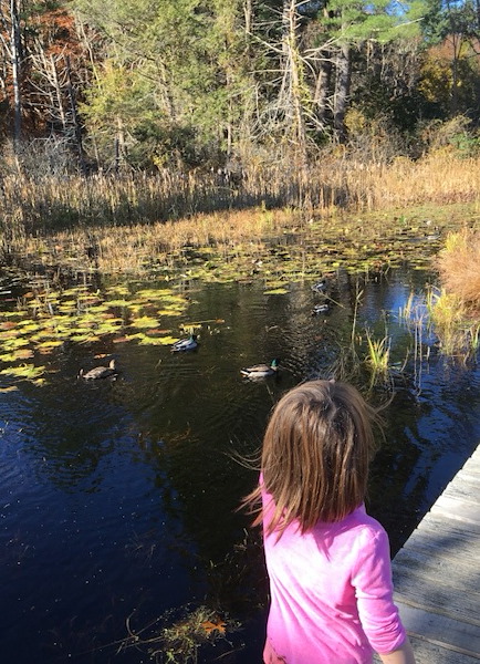 We walked along a boardwalk through coastal marshlands with dozens of ducks swimming alongside us, quacking away.