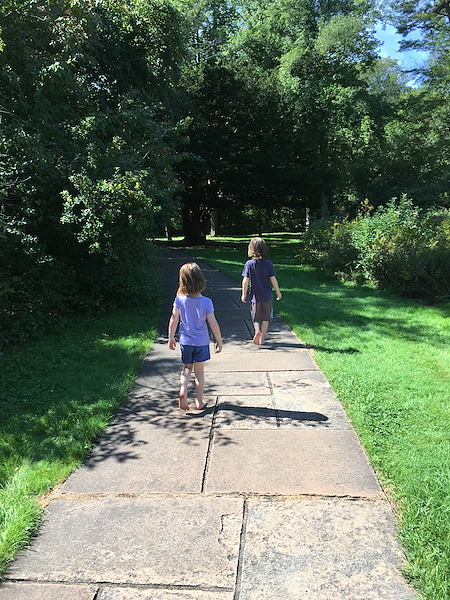 As we followed the clues, we crossed stone bridges, waded through a babbling brook, watched geese cruising around the pond, searched out scenic waterfalls, and petted more than a few dogs.