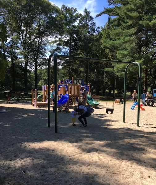 At the bottom of the hill is this sweet little toddler sized playground. Even though they were much too large for this play space, our kids enjoyed the testing out the diggers and monkey bars.