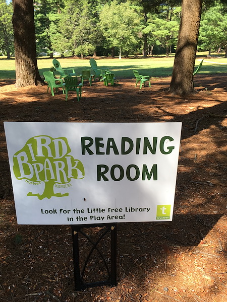 I loved the Reading Room of comfy chairs nestled in a shady evergreen grove complete with a Little Free Library near by.