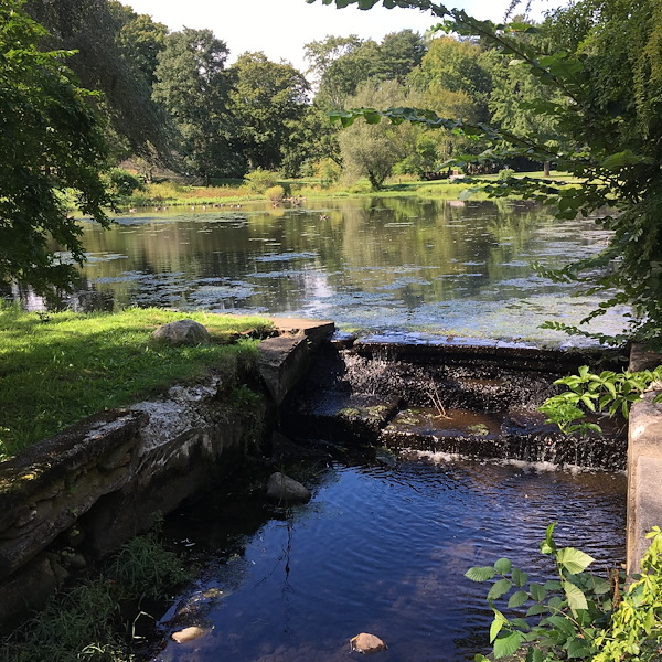 Today we visited the grounds of Francis William Bird Park, a beautiful old property maintained by the Trustees of the Reservation. The park was commissioned by a local industrialist, Charles Sumner Bird, as a place of relaxation for his 2000 mill workers. He hired designer John Nolen to construct "a sequestered breathing place–a combination of broad, sun-swept meadow lands, speckled with shadowed glades, higher tree-screened knolls for the lover of shade, the whole set to the music of a babbling stream." Nearly a century later his vision of a place of relaxation for nearby city dwellers is alive and well.