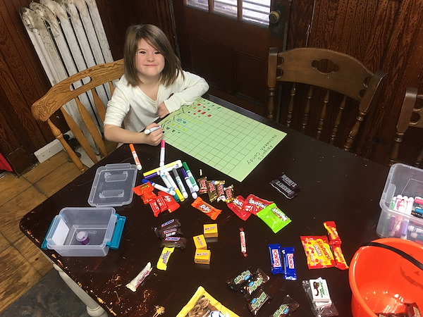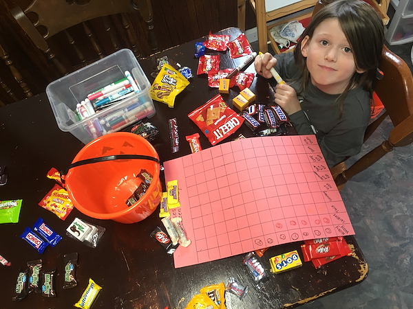 Today we joined homeschoolers everywhere in the quintessential day-after-Halloween activity: sorting and graphing the candy. Natural learning for the win!
