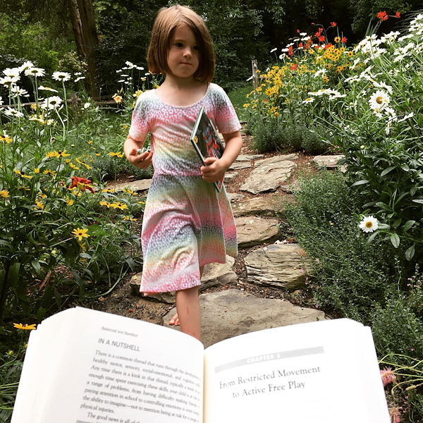 Another favorite memory at the garden with books and blooms! Shortly after this picture was taken she stripped to her underwear and went chasing her brother around the place with a hose. They both ended up muddy, soaking and grinning from ear to ear. Meanwhile, I was reading this book on the importance of making space for unstructured outdoor play so of course I had to indulge their hose escapades.Eight
